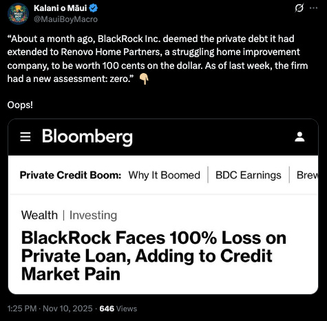 Someone break out the boric acid: Blackrock TCP Capital Corp. ($TCPC) had $150mm of exposure to Renovo Home Partners marked at par at the end of September only for it to collapse into chapter 7 bankruptcy literally TWO MONTHS LATER — L.O.F*CKING.L.