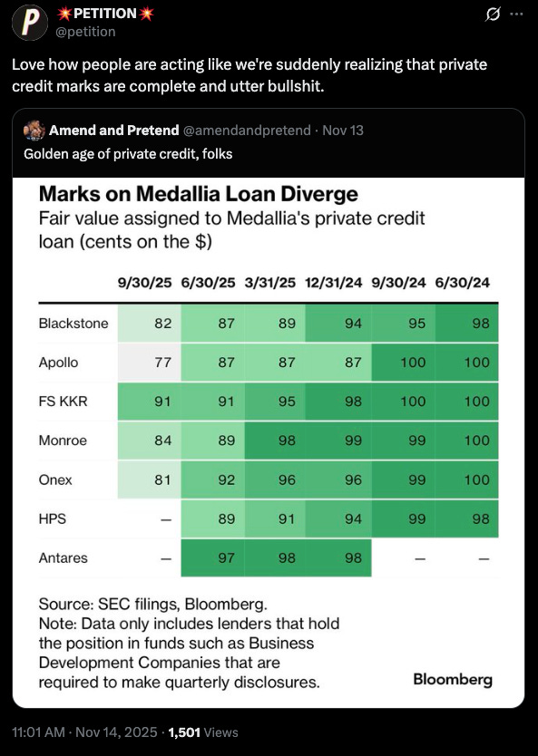 In that vein, a lot of people have their eye on private credit. Sure, on one hand those guys are saying all of the right things. Like, here is Ares Management ($ARES) CEO Michael Arougheti:
