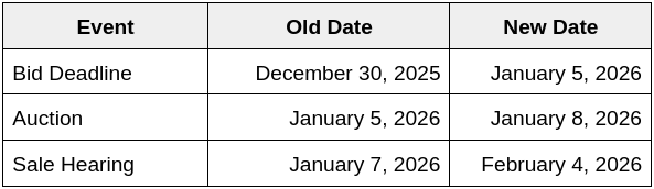 We left off by writing, “A motion to shorten notice in connection with bid procedures is already on the docket (to be heard on January 12, 2026). We’re going to assume that the debtor’s proposed timeline will hold because it literally cannot afford it not to.”