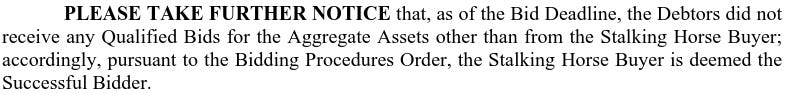 The DIP requires sh*t to get done by February 13, 2026 so while dates pushed a wee bit (mostly due to the court’s calendar), the timeline remains within that parameter: the bid deadline is February 3, 2026 at 4:00 pm (ET), any auction will occur on February 5, 2026 at 10:00 am (ET), and a sale hearing will be conducted on February 10, 2026 at 2:00 p.m. (ET).