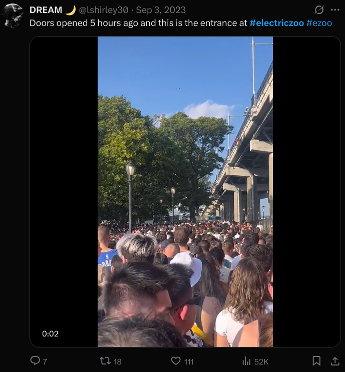 … and while Avant Gardner had strong revenue growth and demand the following year, the ‘23 Electric Zoo apparently “… faced operational and financial challenges, which led to a class action lawsuit …” based on, uh, its being a total clusterf*ck. The debtors oversold the event by 7k tickets, denied entry once capacity had been reached, canceled the first day of the show altogether, and when it finally opened, the lines were E.N.D.L.E.S.S.: