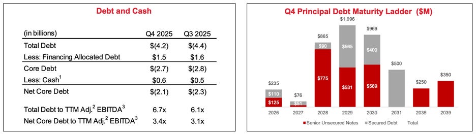 The company still has a few years until it hits its first maturity wall in ’28. Still, two years isn’t a long time, and — amidst core macro headwinds — the company needs to transform its business, integrate its acquisitions, and achieve projected cost savings stat.