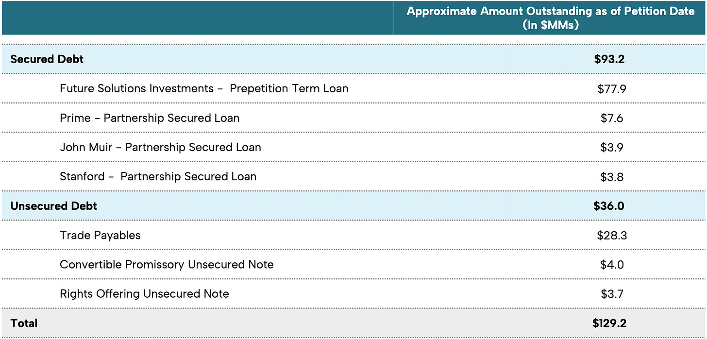 Jokes aside, it must be damn good because, along with CHTI’s MSO contracts, Future Solution Investments LLC (“FSI”) apparently wants to own it. Check the prepetition debt stack ⬇️ …**