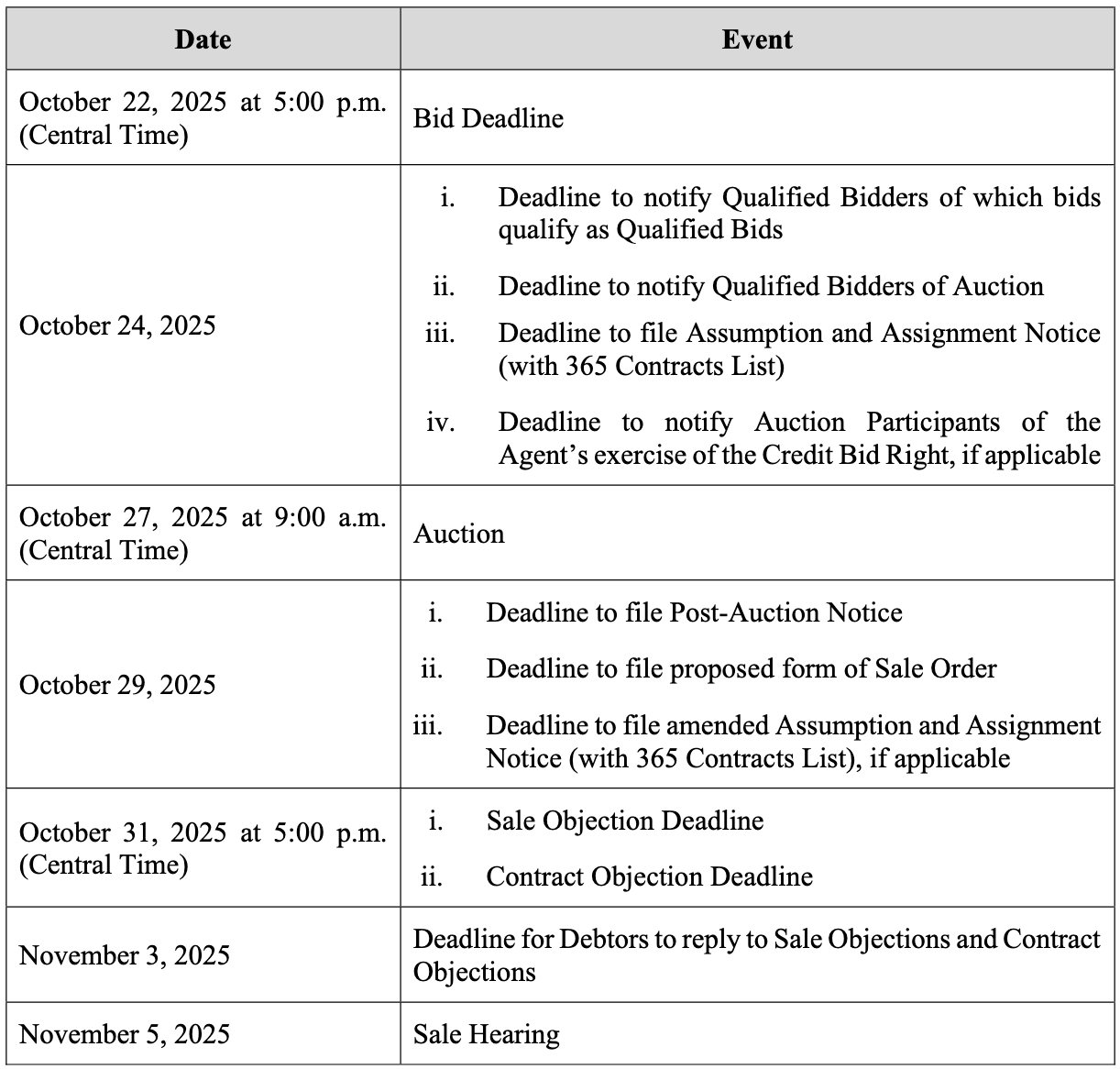 Anyway, the UCCās beef with the then-100-day, November 19, 2025 confirmation milestone was understandable. Mostly because these cases are going to go well beyond that and may take a different form altogether. On September 24, 2025, the debtors pushed the final DIP hearing out to October 14, 2025 at 3pm CT ā over a month after its original September 9 date ā and reset the planās confirmation outside date to ⦠this canāt be a coincidence ⦠December 24, 2025.