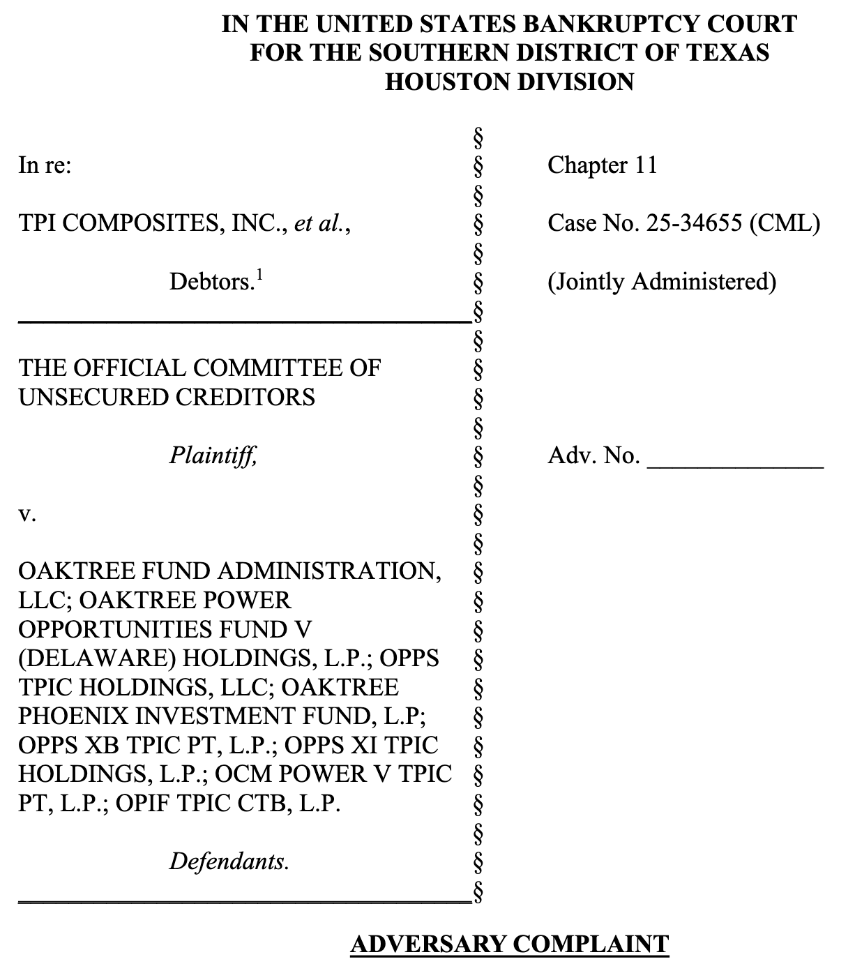 Recall that, on August 11, 2025, TPI Composites Inc. ($TPICQ) (āTPICā) and its 21 affiliates (collectively, together with TPIC, the ādebtorsā) filed bankruptcy cases sans any clear exit path but aspirations, š„², to one day confirm a chapter 11 plan.