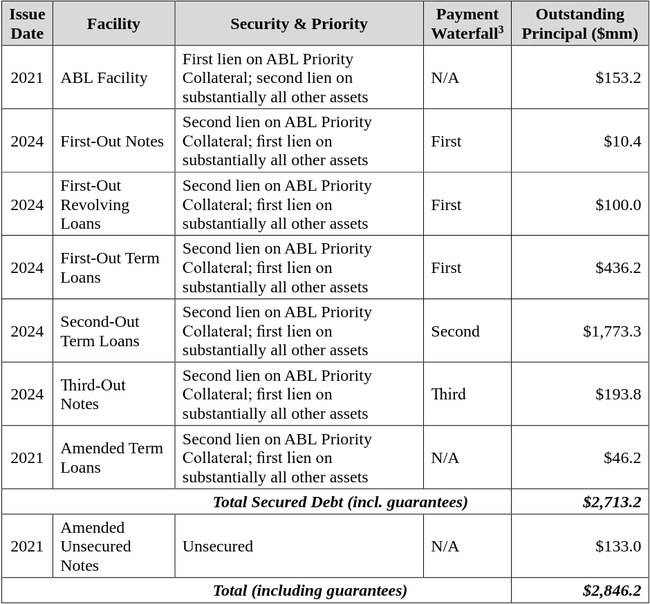 Around the same time, the debtors entered into pertinent financing arrangements: (i) a $200mm ABL facility with Bank of America, N.A., (ii) a credit agreement now agented by UMB Bank, N.A. that provided a $200mm term loan (the “amended term loans”) and $100mm revolver, and (iii) the issuance of $500mm in senior unsecured notes due ‘29 (the “senior unsecured notes”). That set the stage for a whole bunch of ...