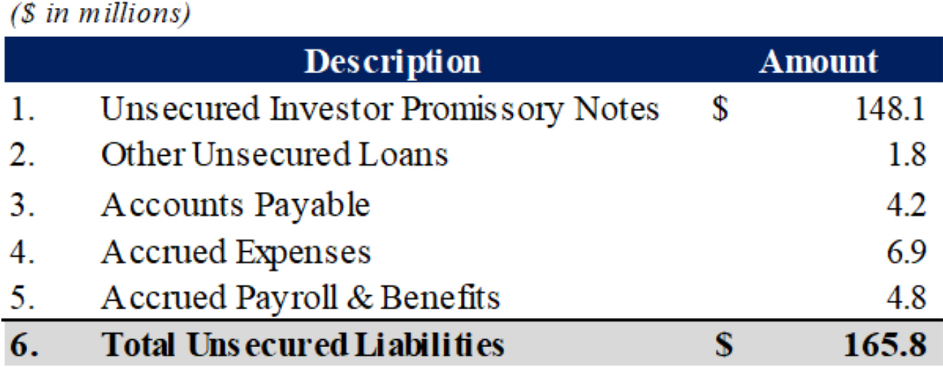 ****There are also intercompany loans, a lot of which were entered into in the months or days leading up to bankruptcy. Meanwhile, the Creswell and Winery Lane properties have, respectively, ~$2.6mm and ~$2.7mm in mechanics’ liens asserted against then, and debtor IHC – Augusta II Propco, LLC has $234k in architectural liens filed. Plus, there are unsecured liabilities, most of which are owed to investment funds: