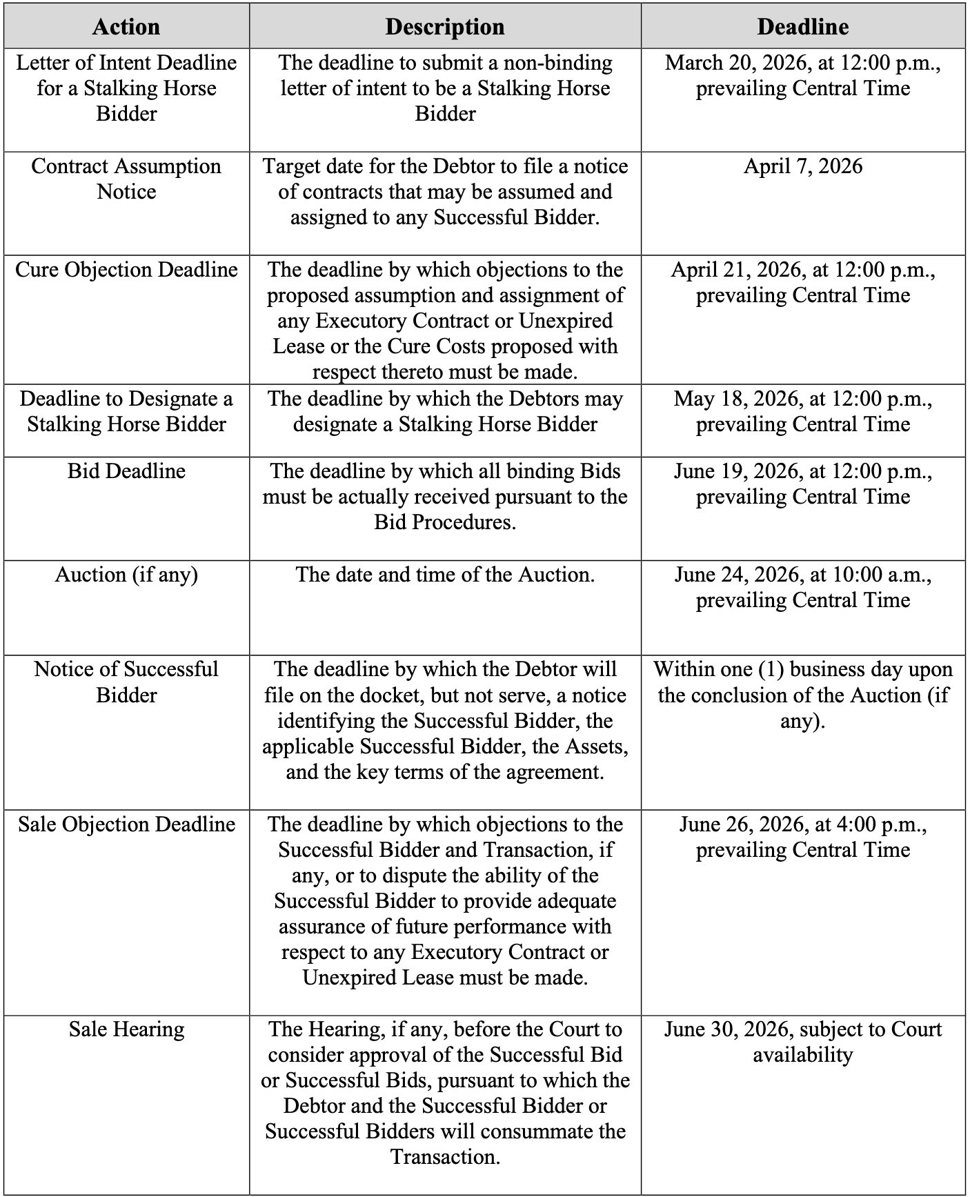 Perhaps one of them will step in ahead of the second-day? Maybe. On February 4, 2026, the court held the first-day hearing, preserved the objectors’ issues for later, and granted all other requested relief. The second-day hearing will go forward on March 3, 2026, at 1:30pm CT.