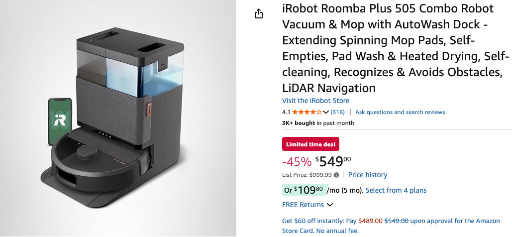 We will continue to watch this situation play out. In the meantime, if you have some strange affinity for robot vacuums, you can feel free to do your part to shore up the company’s liquidity by procuring yourself a deeply-discounted iRobot Roomba Plus on … gulp … Amazon, of all places: