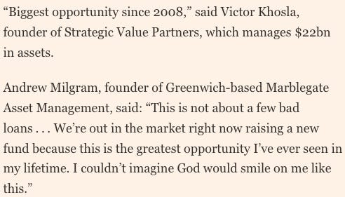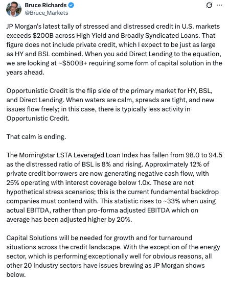 8. Private Credit (Long Opportunity?). Allegedly the current private credit environment is an opportunity for distressed investors.