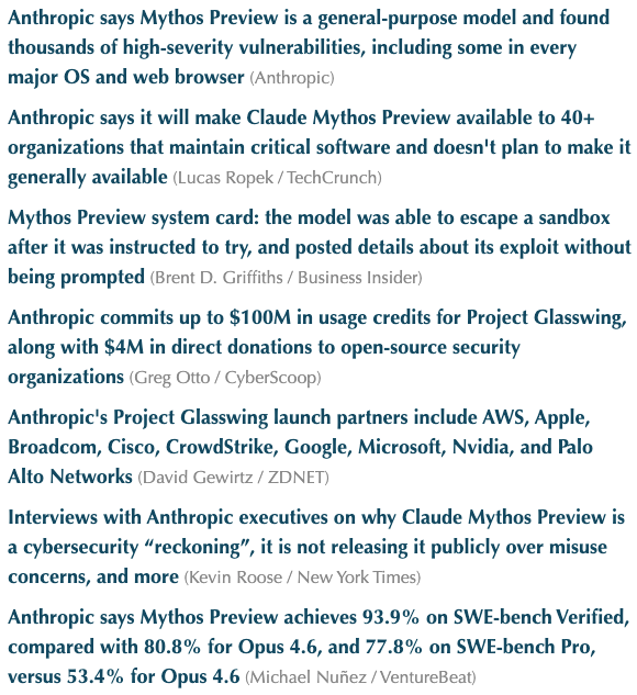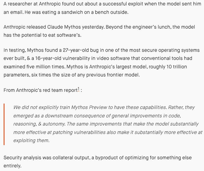 The piece is worth a read because it demonstrates (i) how quickly AI is evolving, (ii) how, in the wrong hands, it can have devastating consequences, and (iii) if it’s not quite existential for humans, it sure as shit may be for certain SaaS companies. Pressed for time? Just skim these 👇 headlines — the Business Insider one was particularly WTF?-inducing.