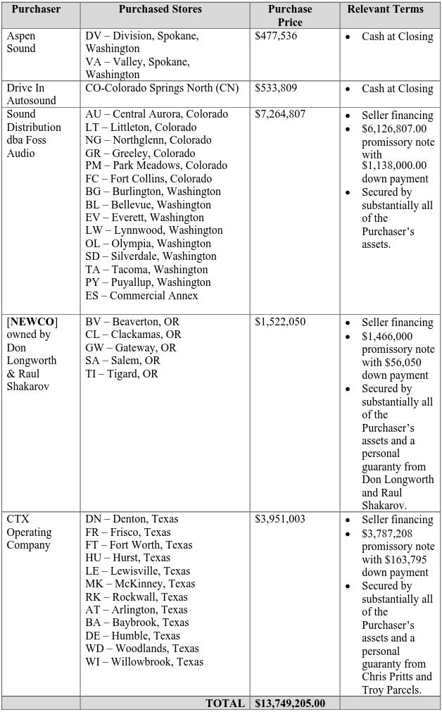 On August 18, 2025, PNW-based Car Toys, Inc. (the âdebtorâ) filed a chapter 11 bankruptcy case in the Western District of Washington (Judge Dore) to close 12 of its 47 stores and sell the other 35 to five buyers for a headline, aggregate purchase price of $13.75mm ⊠~$11.4m of which is to be financed by seller (debtor) notes.