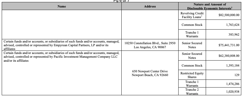 … and the plan was to cut that debt stack by $795mm via equitization of the senior secured notes and convertible senior notes, while simultaneously providing some new money via a $350mm equity rights offering and $840mm in exit secured notes.**