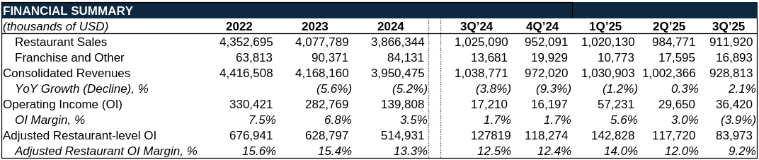Based on the companyâs share price, weâd guess none of you have either. To bring you up to speed, over the past several years, the company has been experiencing issues; namely, and to borrow from CEO Mike Spanos at the November 6, 2025 Q3â25 earnings call: â⊠overly complex menus, unclear brand positioning, inconsistent guest experiences, a gap in steak quality and diminishing value perception.â