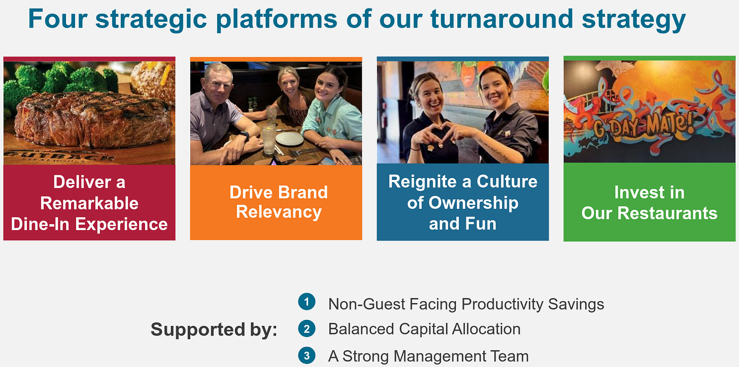 đFinally, concurrent with 3Qâ25 results, on November 6, 2025, the company officially announced its comprehensive turnaround strategy, focused on Outback. On its face, itâs nothing ground-breaking: