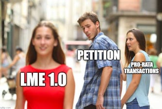 PETITION: Thank you for making an âappearanceâ with PETITION, Damian. Given the nature of your practice, we want to start with the highly unoriginal topic that people in the RX industry donât seem to want to ever stfu about: liability management. Letâs start with laying a foundation: how would you describe, as succinctly as possible, the difference between whatâs been dubbed LME 1.0 versus LME 2.0 versus LME 3.0?