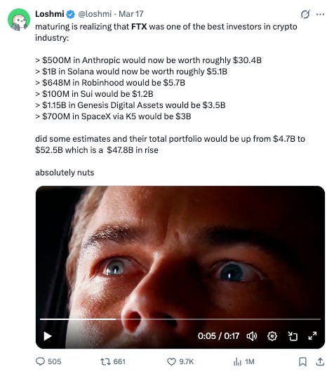 Secretary Bessent: Thatās a tough call given all the publicity around that case and the political backlash a pardon might cause. But SBF was a big believer in effective altruism, which meant his motives were pure and he likely would have given away his billions had he not been convicted. He also was, as your dumba$$ Johnny has pointed out, a phenomenal investor.