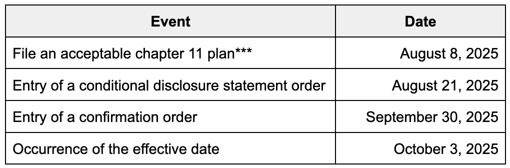 The challenge period will be kicked to, at most, October 10, 2025 (unless extended by agreement or ordered by the court), and