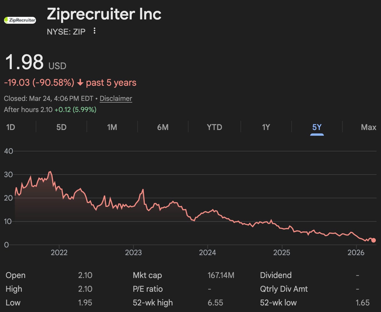 ZipRecruiter, Inc. ($ZIP) circles the drain + RAD Diversified REIT, Inc. lands in chapter 11