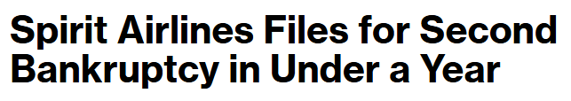By now we’re sure most of you have heard the news: Spirit Aviation Holdings, Inc. ($FLYY) (“Spirit”) and five affiliates (together with Spirit, the “debtors”) filed chapter 22 bankruptcy cases on August 29, 2025 (in the Southern District of New York again … before Judge Lane again) — cementing itself as perhaps the most egregious violator of PETITION’s “Two-Year Rule” … literally … ever.