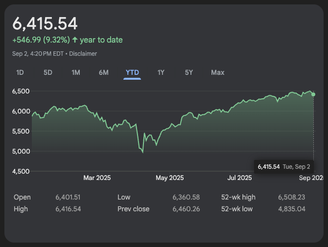 After falling 0.7% yesterday on tariff uncertainty (and poor manufacturing readings), the S&P 500 Index remains up 9.3% YTD, recovering nicely from the early-April “Liberation Day” shock that sent equities plummeting for a hot second. This 👇is a pretty wild chart: