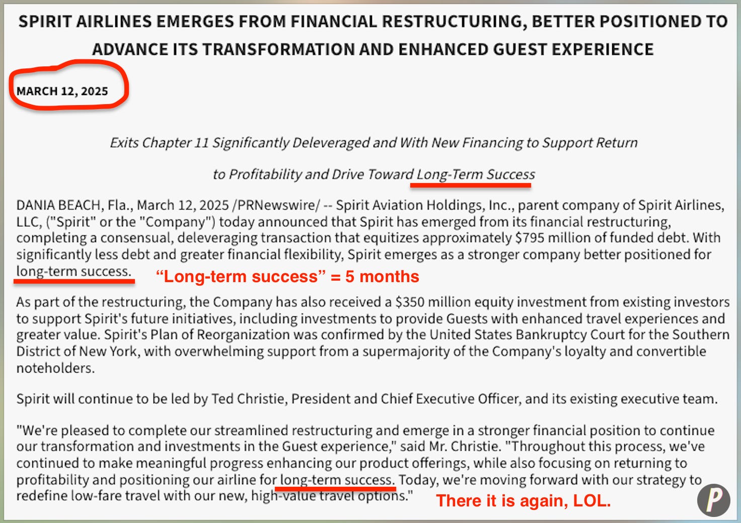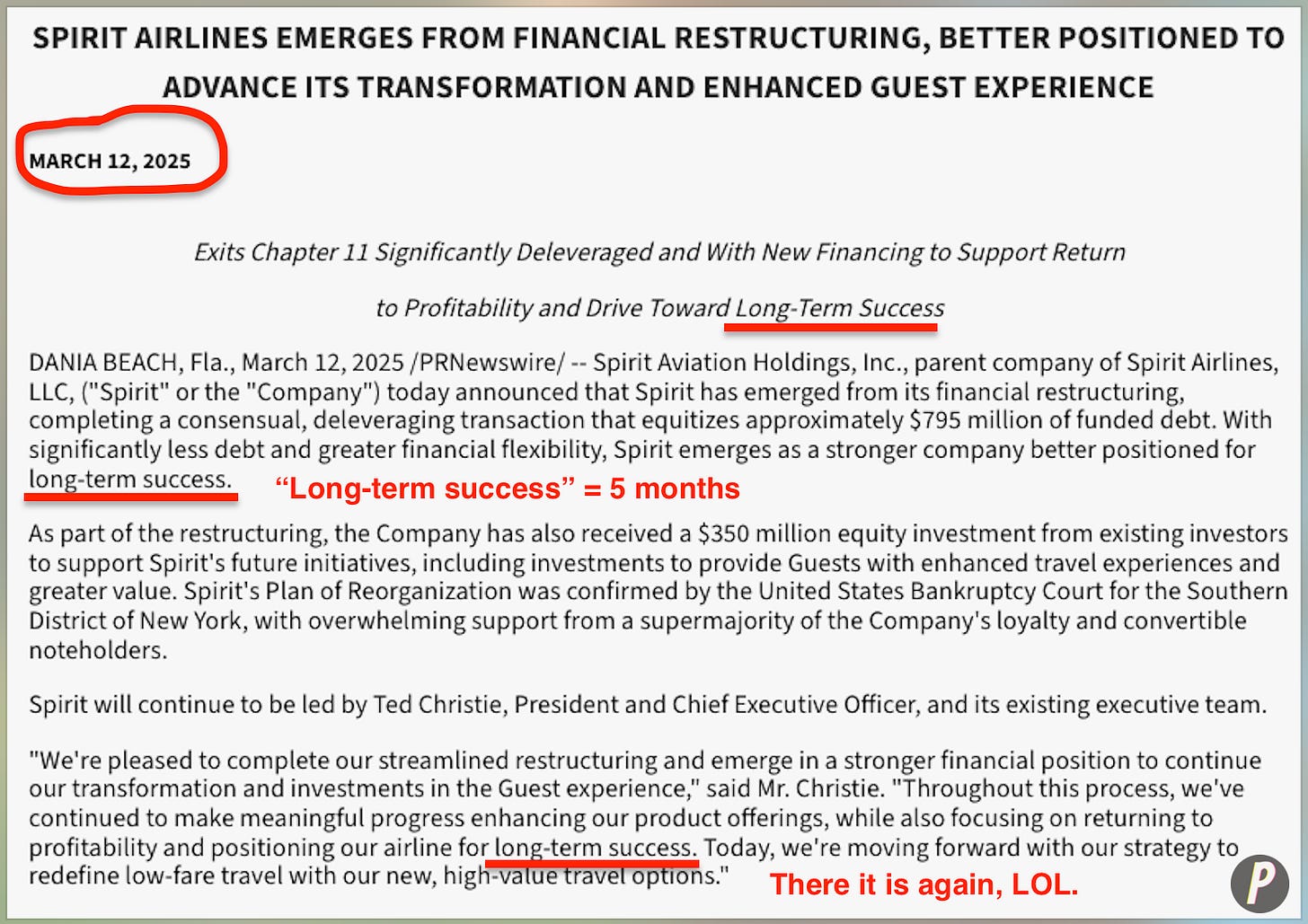 … except, um, the 10-Q is dated August 11, ‘25, and given Spirit continued to hemorrhage cash, it included this nugget:
