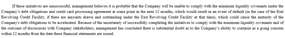 Let me start by providing some context around what’s included in the report. The report uses the phrase ‘substantial doubt about the Company’s ability to continue as a going concern.’ This is a phrase required by our outside auditors to convey that there is risk if we do not make changes. But, we are.”