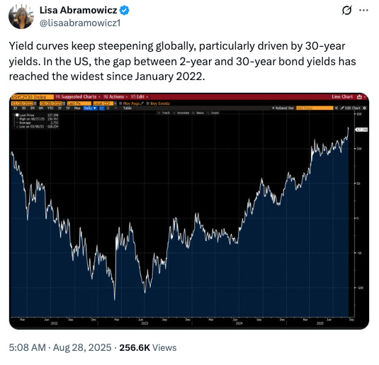 Looking for a new house? Get f*cked because the 30Y Treasury, upon which mortgage rates are based, is higher now than it was when the Fed started cutting rates in September ‘24 — by almost a full 100 bps.