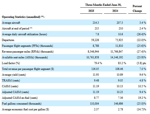 Let’s peep the 2Q’25 10-Q to see what went right and, more importantly, what went wrong. Starting with the former, and at the risk of overloading y’all with airline KPI jargon, the table below gives a good overview: