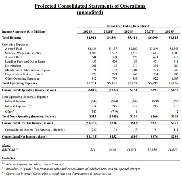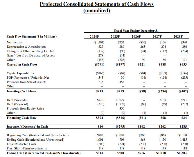 A far cry from the projections used to confirm the last bankruptcy plan, which show, LOL, a $222mm net operating loss for FY25.