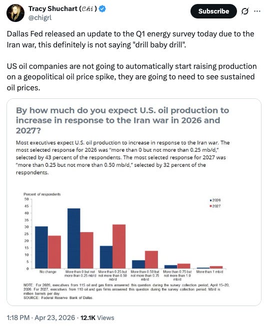 … but we (and you) could be forgiven for thinking that things should be a lot busier NOW, rather than looking out to ‘27. On that point, here are a number of things we found interesting from the past week — all of which have to deal with fallout from Iran.