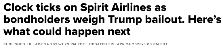 Which brings us back to Mr. Richards. There’s been a lot of talk about cockroaches in the private credit space serving as the canary in the coal mine — the precursor to much more distress in the market. But given the administration’s failure to truly reopen the Strait and the consequent outlook for oil, will Spirit Airlines end up being the real canary, 🤔?