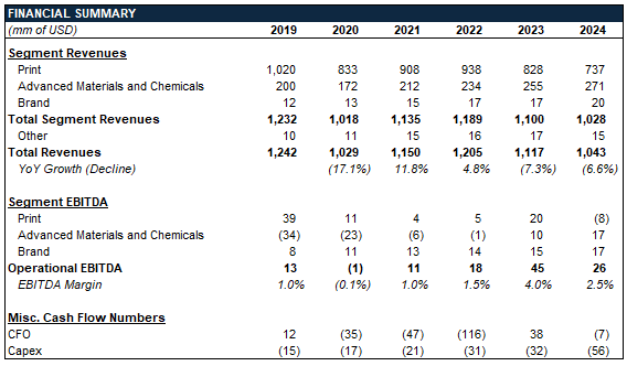 KODK in its current iteration is now a far cry from its film camera roots; it has evolved into (i) a print segment (printing plates, inkjet presses, etc.), (ii) an advanced materials and chemicals segment (photographic film, pharmaceutical starting materials), and (iii) a brand segment (licenses out the âKodakâ name).