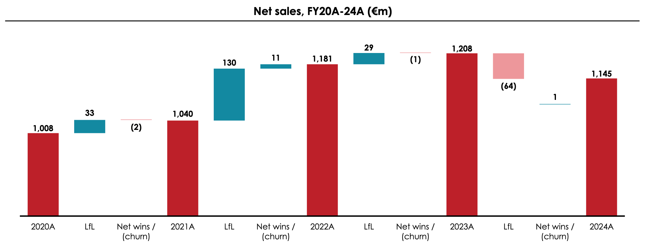 Let’s lay the groundwork. If you couldn’t guess from pic at the top, Selecta is a vending machine food and drink company.** Over the last few years, its sales looked like this …