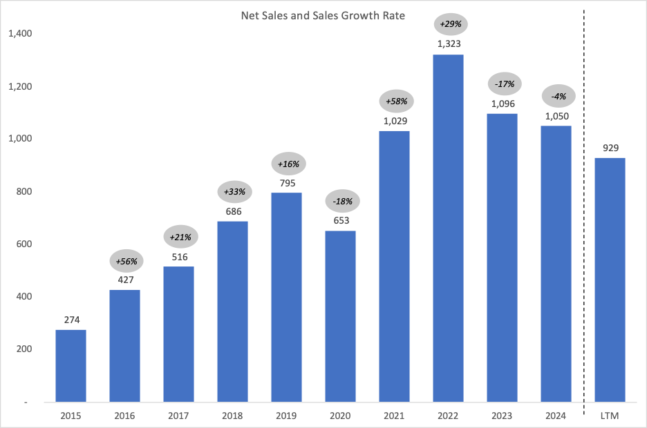 Despite the investment from industry heavy-hitters, demand for Funko products finally began to wane in ’23. Net sales declined 17% in FY23 and another 4% in FY24. Through 3Q this year, Net Sales are down a further 16% and are projected to fall below the $1b mark for the first time since Funko hit that milestone in ’21.