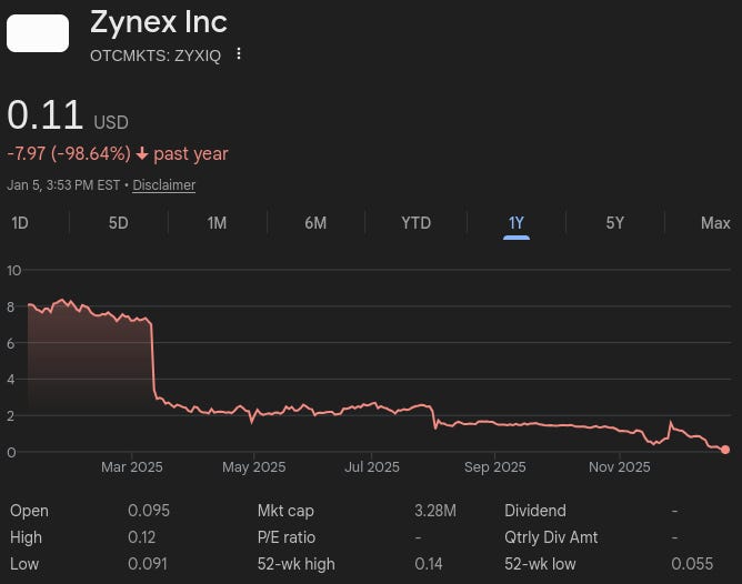The list goes on, and there’s even more related fallout (reduced sales, mass layoffs, negative EBITDA, earnings, cash flow for ‘25), but you get the picture: the debtors were and currently are 1,000% f*cked, as reflected by the stock price: