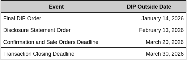 Heck, that a DIP was agreed to at all is kinda remarkable because in mid-December ‘25, the debtors came back around with their hand out, asking for even more money, and the ad hoc group only signed off on the upsizing after, realizing liquidation and firing the last ~400 employees was the only other option, Mr. Dyson stepped in to fund $2mm of the financing out of his own pocket. That apparently assuaged the concerns of the ad hoc group enough to get the debtors into bankruptcy with a restructuring support agreement (the “RSA”) in hand, which provides: