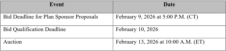 📍Stalking Horse Sale Process. A marketing and sale process to gauge third-party interest in the debtors’ assets, with the ad hoc group serving as a credit-bidding, “plan sponsor” stalking horse, on the following timeline: